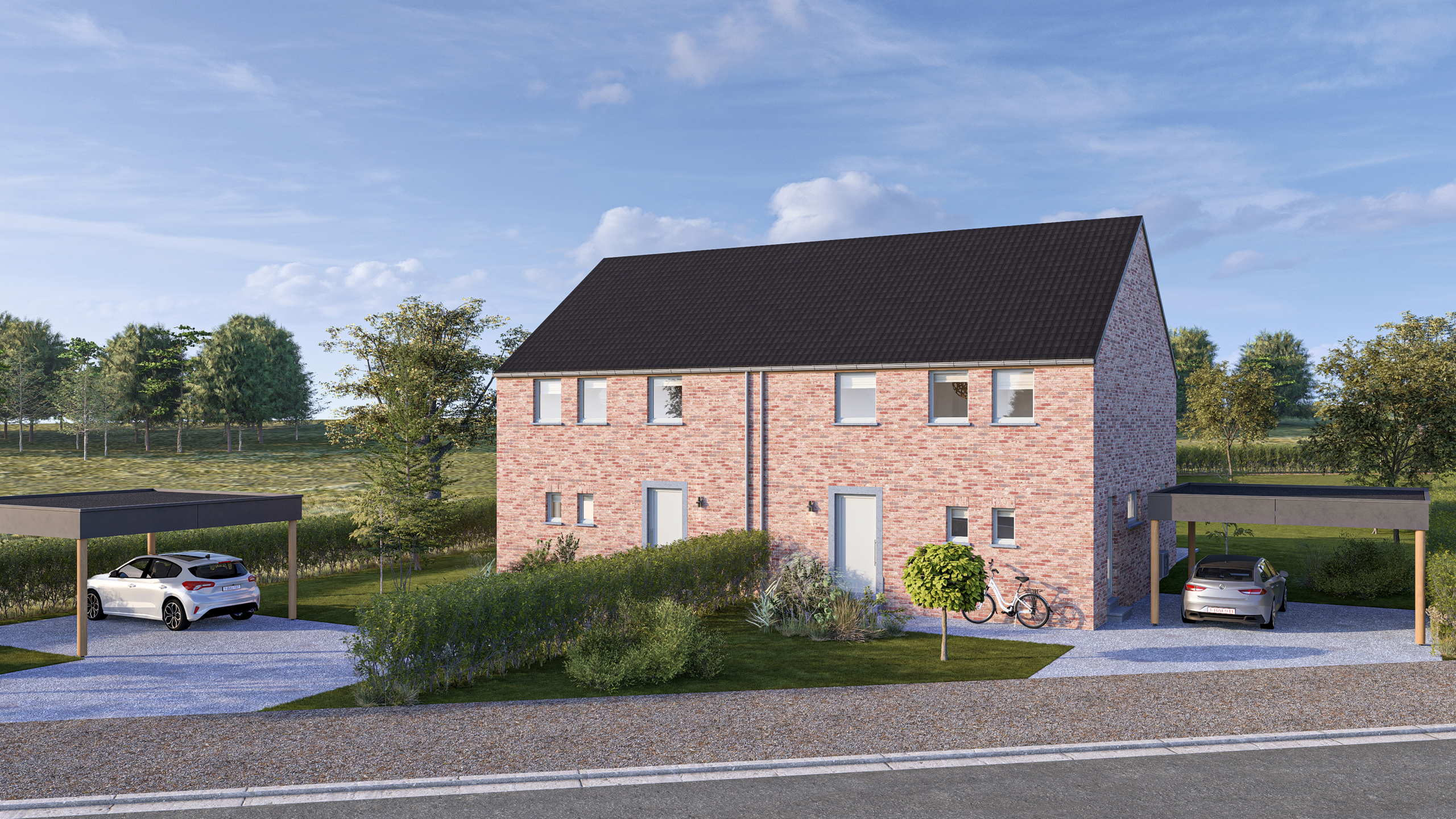 Idéalement situées, dans le village de Faimes, Trevi Rasquain vous présente ces 2 maisons neuves de 3 chambres d'environ 160m².