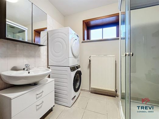 SOUS OPTION Lens, situé non loin de la gare, des axes routiers et des commerces, bel appartement 2 chambres situé au rez de chaussée d'un petit immeuble paisible à la campagne. Investissement idéal : appartement en très bon état dans un petit immeuble sans ascenseur à faibles charges. L'appartement se compose d'un hall d'entrée carrelé vers le grand séjour de 40 m² donnant accès à la terrasse et au beau jardin de plus de 3 ares. Jolie cuisine équipée séparée de 7m². Hall de nuit de 4 m² vers les deux belles chambres de 13 et 12 m². Agréable salle de douche de 6 m² composée d'une cabine de douche et d'un meuble évier. Toilette séparée. CC gaz (propane). Double vitrage bois. PEB D. Adoucisseur. Garage et cave en option. Faire offre à partir de 180.000 €. Infos et visites au 02/355.50.55.
