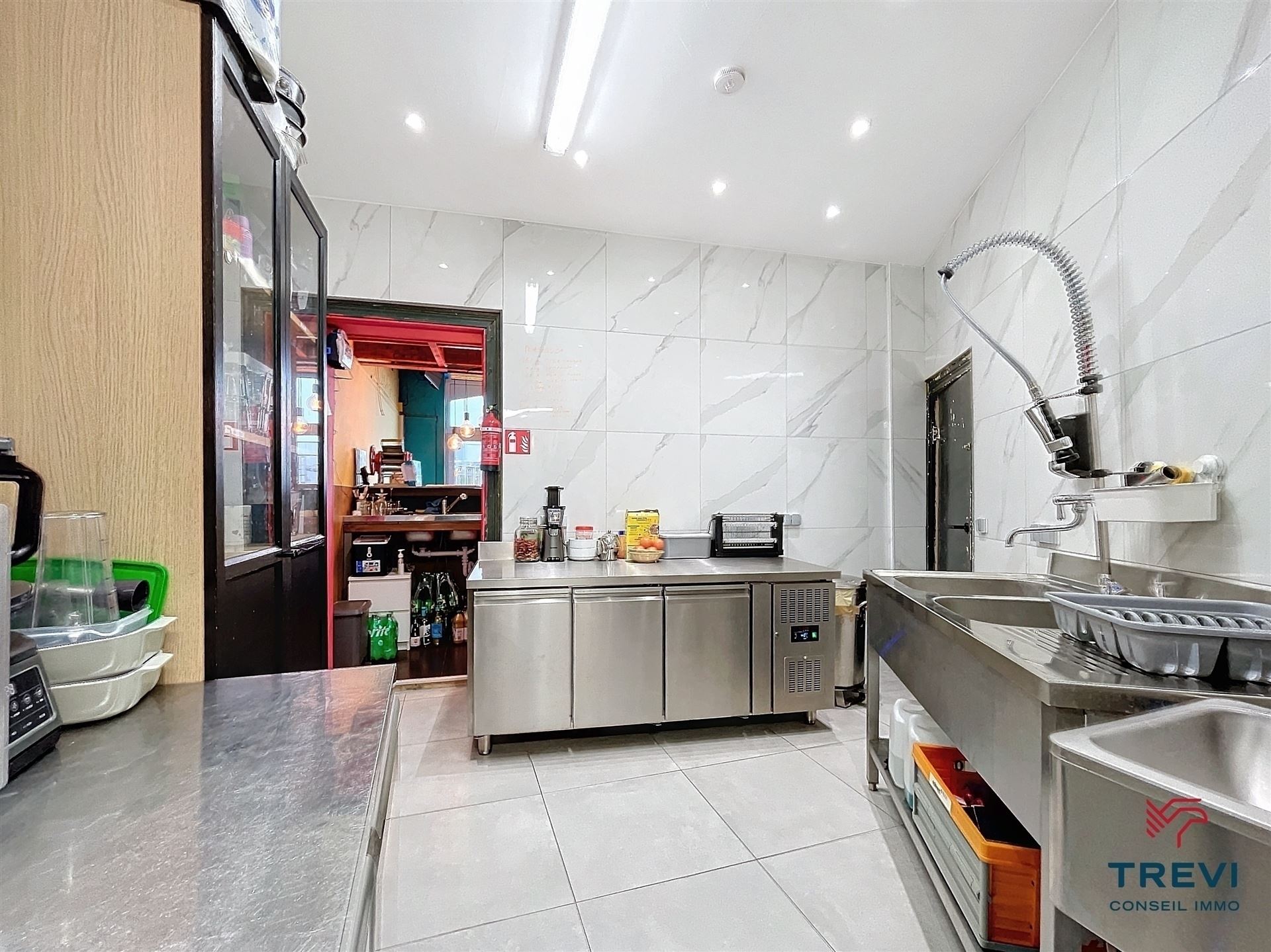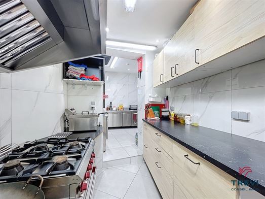 SOUS OPTION Vidéo de présentation disponible : https://youtu.be/IThGQIorHd0 Bel immeuble de commerce composé d'un joli restaurant avec petite terrasse arrière et belle cuisine professionnelle et d'un grand appartement en duplex rénové. L'immeuble se compose d'une grande pièce restaurant de 50 m² vers la belle cuisine professionnelle de 20 m². Deux toilettes séparées pour les clients.Débarras. Cuisine et pièce frigo vers l'étage. Belle terrasse vers l'extérieur idéal pour le restaurant. A l'étage, bel hall avec espace cuisine vers les deux grandes chambres de 30 et 15 m². Grande salle de douche renouvelée de 9 m² avec toilette, douche italienne sous bambou et meuble simple vasque. A l'étage supérieur, 2 belles pièces de 20 m² sous osb et rangements dans les combles.Grandes caves. Électricité conforme. PEB C. Double vitrage PVC. CC au gaz. 250.000€. Infos et visites au 02/355.50.55.