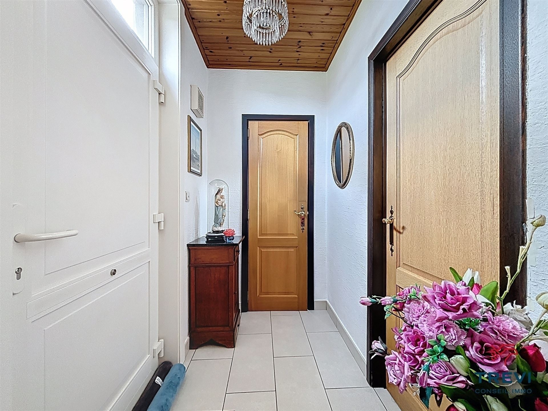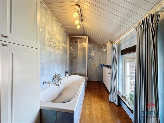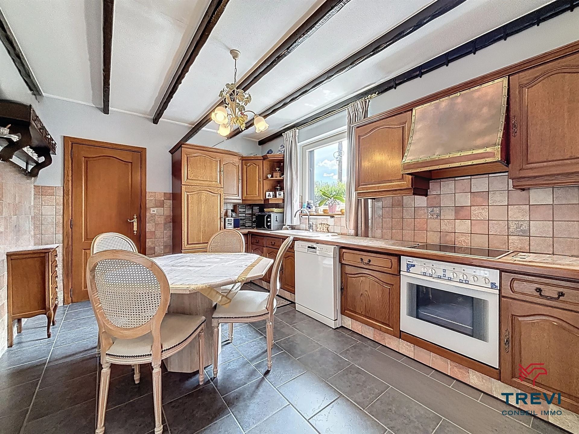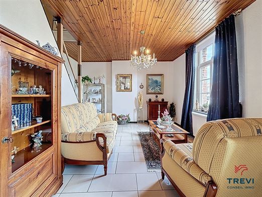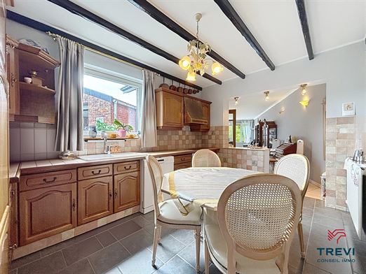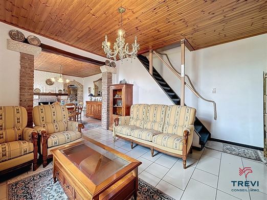 SOUS OPTION Jolie maison 3 façades avec jardin arrière et grand garage. En retrait de la route et à proximité des axes vers Bruxelles, belle fermette 3 façades proposant de grands volumes au rez de chaussée, un beau jardin ainsi qu'un grand garage via l'allée. La maison se compose d'un hall d'entrée avec toilette séparée vers le séjour de 33 m² carrelé équipé d'un feu ouvert. Belle cuisine rustique de 14 m². 2e séjour carrelé de 45 m² vers le jardin. A l'étage, 2 belles chambres en enfilade de 17 m² chacune et un bureau de 5 m². Salle de douche de 8 m² équipée d'une douche à l'italienne et d'une toilette. Cave. Grand garage latéral de 50 m² via portail en fer forgé. Toiture remplacée il y a 15 ans et isolée. PEB D. CC gaz. Châssis pvc double vitrage et volets. Tente solaire électrique. Système d'alarme. Moustiquaires. Faire offre à partir de 290.000€. Infos et visites au 02/355.50.55.