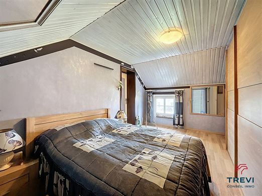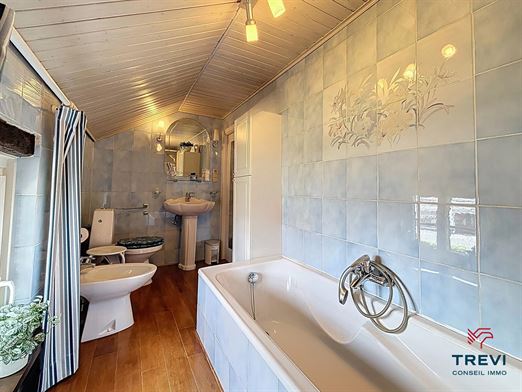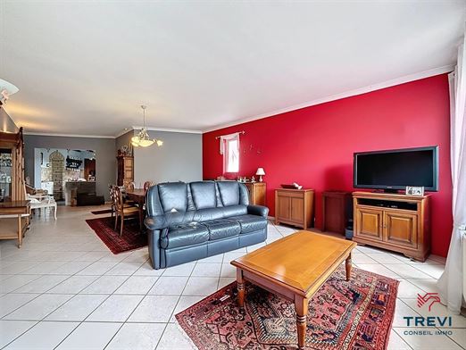 SOUS OPTION Jolie maison 3 façades avec jardin arrière et grand garage. En retrait de la route et à proximité des axes vers Bruxelles, belle fermette 3 façades proposant de grands volumes au rez de chaussée, un beau jardin ainsi qu'un grand garage via l'allée. La maison se compose d'un hall d'entrée avec toilette séparée vers le séjour de 33 m² carrelé équipé d'un feu ouvert. Belle cuisine rustique de 14 m². 2e séjour carrelé de 45 m² vers le jardin. A l'étage, 2 belles chambres en enfilade de 17 m² chacune et un bureau de 5 m². Salle de douche de 8 m² équipée d'une douche à l'italienne et d'une toilette. Cave. Grand garage latéral de 50 m² via portail en fer forgé. Toiture remplacée il y a 15 ans et isolée. PEB D. CC gaz. Châssis pvc double vitrage et volets. Tente solaire électrique. Système d'alarme. Moustiquaires. Faire offre à partir de 290.000€. Infos et visites au 02/355.50.55.