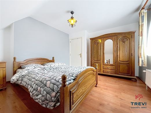 SOUS OPTION Saintes, à proximité des axes vers Bruxelles, jolie villa proposant 3 chambres et un grand jardin vers la campagne. La maison se compose d'un bel hall d'entrée carrelé avec toilette invités vers le séjour carrelé de 30 m² équipé dune cheminée et d'une cassette à bois. Jolie cuisine rustique ouverte de 10 m². Grande terrasse et beau jardin bien orienté. Garage via allée latérale équipé d'une porte électrique. A l'étage, via le hall de nuit, grande chambre parentale de 14 m² sous plancher stratifié et deux autres chambres d'environ 11 m² chacune. Salle de bain de 8 m² équipée d'une baignoire et d'une douche. Débarras. Châssis de 2024 et volets (certains électriques). Adoucisseur d'eau.Citerne d'eau de pluie de 3000 l (non raccordée). Vidéophone. Alarme et caméras. Chaudière au gaz à condensation récente. PEB C. Faire offre à partir de 350 000 €. Infos et visites au 02/355.50.55.