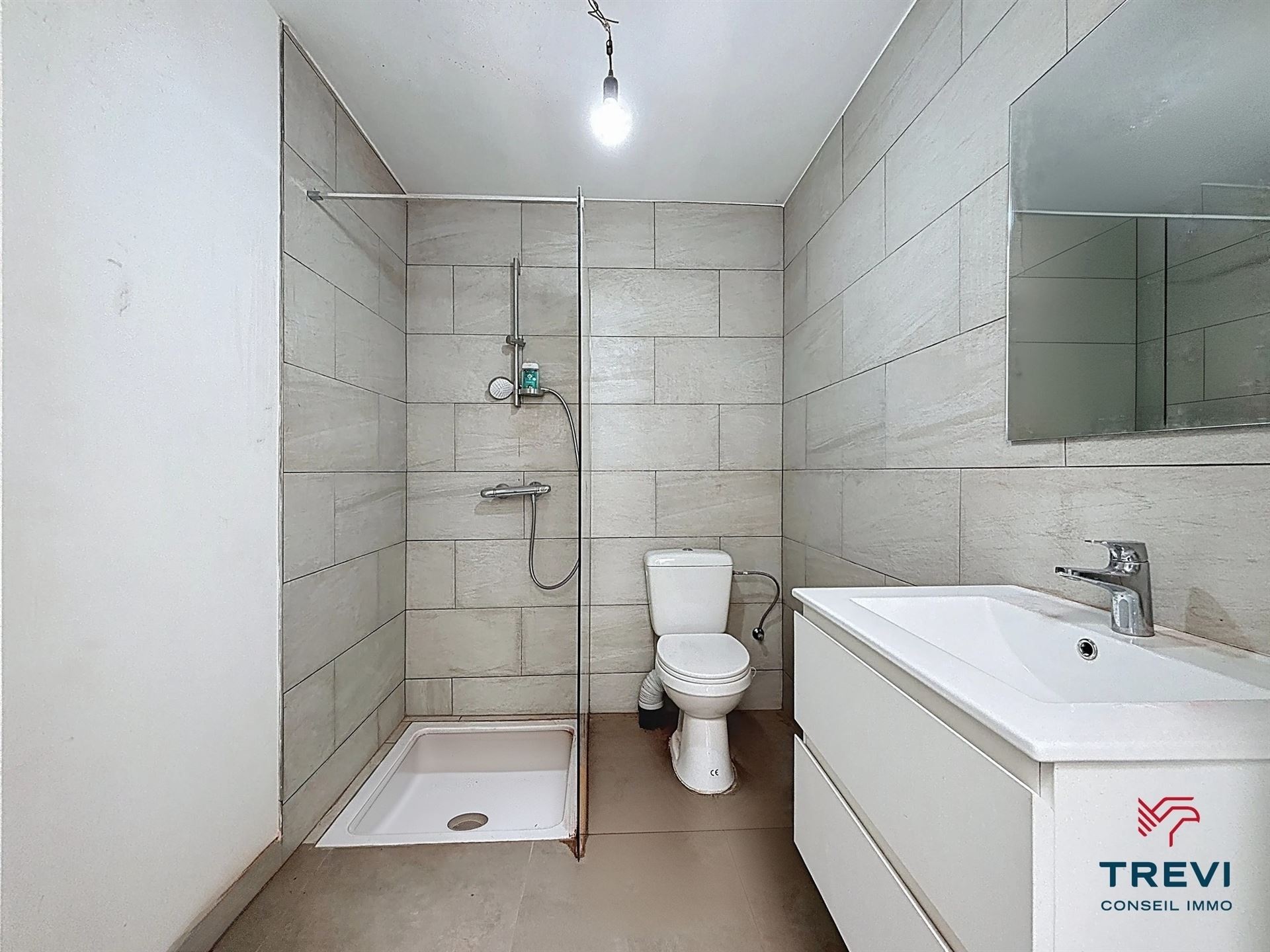Clabecq, aux portes de Bruxelles, bel appartement tout rénové avec garage et joli jardin. Possibilité de construire un duplex au dessus de l'appartement existant. Il se compose d'un grand séjour carrelé de 43 m² avec coin à dormir, d'une cuisine semi équipée de 10 m² vers la terrasse et le beau jardin orienté sud, d'une salle de douche et d'une toilette. Grand garage de 30 m² avec porte sectionnelle électrique, coin buanderie et chaufferie. Double vitrage et volets. Faire offre à partir de 230.000€. PEB G, mais il suffirait d’installer une chaudière à condensation pour atteindre un PEB D (étude disponible sur demande). Infos et visites au 02/355.50.55