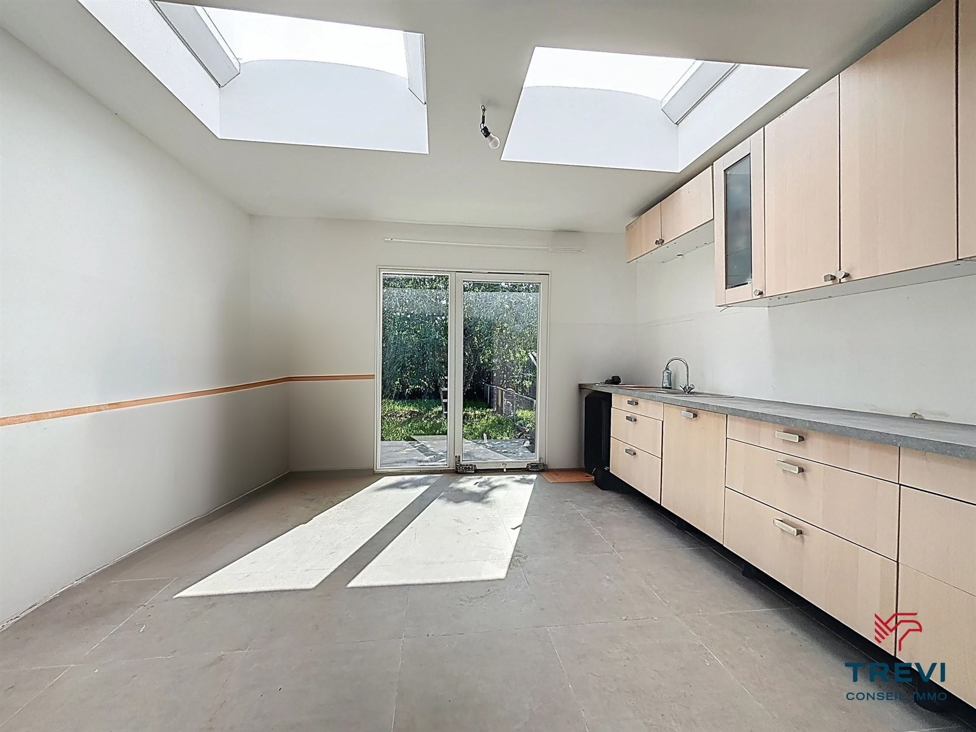 Clabecq, aux portes de Bruxelles, bel appartement tout rénové avec garage et joli jardin. Possibilité de construire un duplex au dessus de l'appartement existant. Il se compose d'un grand séjour carrelé de 43 m² avec coin à dormir, d'une cuisine semi équipée de 10 m² vers la terrasse et le beau jardin orienté sud, d'une salle de douche et d'une toilette. Grand garage de 30 m² avec porte sectionnelle électrique, coin buanderie et chaufferie. Double vitrage et volets. Faire offre à partir de 230.000€. PEB G, mais il suffirait d'installer une chaudière à condensation pour atteindre un PEB D (étude disponible sur demande). Infos et visites au 02/355.50.55