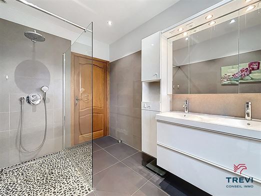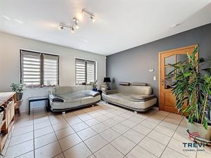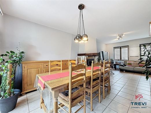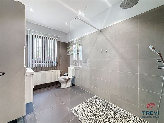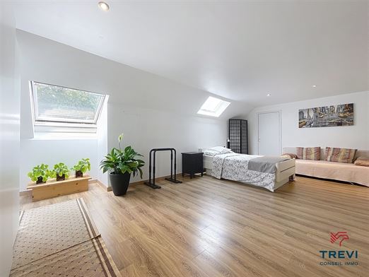Dans le joli petit village de Saintes, proche des commerces, écoles et arrêt de bus accessible à pied, magnifique villa partiellement de plain pied avec joli jardin privatif. La maison se compose d'un hall d'entrée carrelé de 8 m² avec toilette invités vers le beau séjour carrelé de 32 m² et sa cassette à bois. Accès vers la pergola et le beau jardin. Jolie cuisine full équipée récente de 14 m² avec coin déjeuner et accès vers la belle véranda. Via hall de nuit, belle chambres de 14 et dressing de 9 m² avec placards encastrés sur mesure. Salle de douche carrelée de 7 m² avec douche italienne, meuble double vasque et miroir, wc. Beau garage carrelé de 25 m² avec porte sectionnelle électrique et coin buanderie. Beau bureau de 10 m² vers l'étage. Grand espace aménagé de plus 40 m² sous plancher avec vélux et 2e chambre de l'étage de 24 m². Grenier de rangement. Elec ok. Peb C. CC gaz haut rendement. Système d'alarme. Abri de jardin de 20 m². Faire offre à partir de 550.000€. Infos et visites au 02/355.50.55