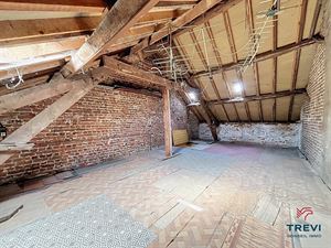 SOUS OPTION Rebecq. Agréable maison de ville proposant de beaux volumes à rénover et un joli jardin. Excellente situation dans une rue résidentielle très accessible et proche des axes vers Bruxelles. La maison se compose d'un grand séjour de 40 m² vers la cuisine de 10 m² et sa jolie verrière pour la lumière. Salle de bain et toilette séparée. Grande remise de 20 m². Terrasse, beau jardin de 4 ares et accès latéral très pratique. A l'étage, via le hall de nuit, deux grandes chambres de 18 et 14 m². La 2e chambre mène au beau grenier aménageable de 35 m² où l'on peut créer 2 chambres supplémentaires ou une superbe suite parentale. Cave voutée saine. PEB G. Simple vitrage bois et volets, citerne d'eau de pluie. Poêle au gaz. Abris de jardin. Faire offre à partir de 160 000 €. Infos et visites au 02/355.50.55