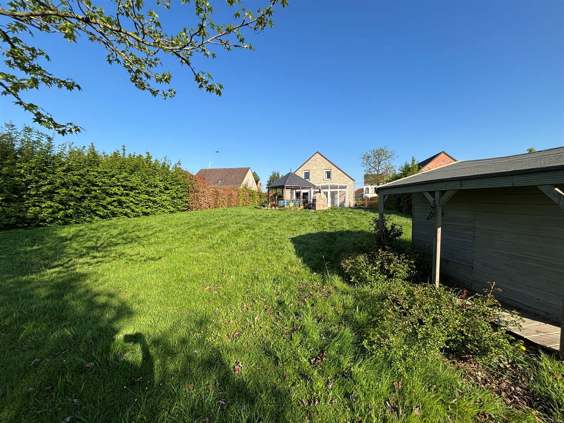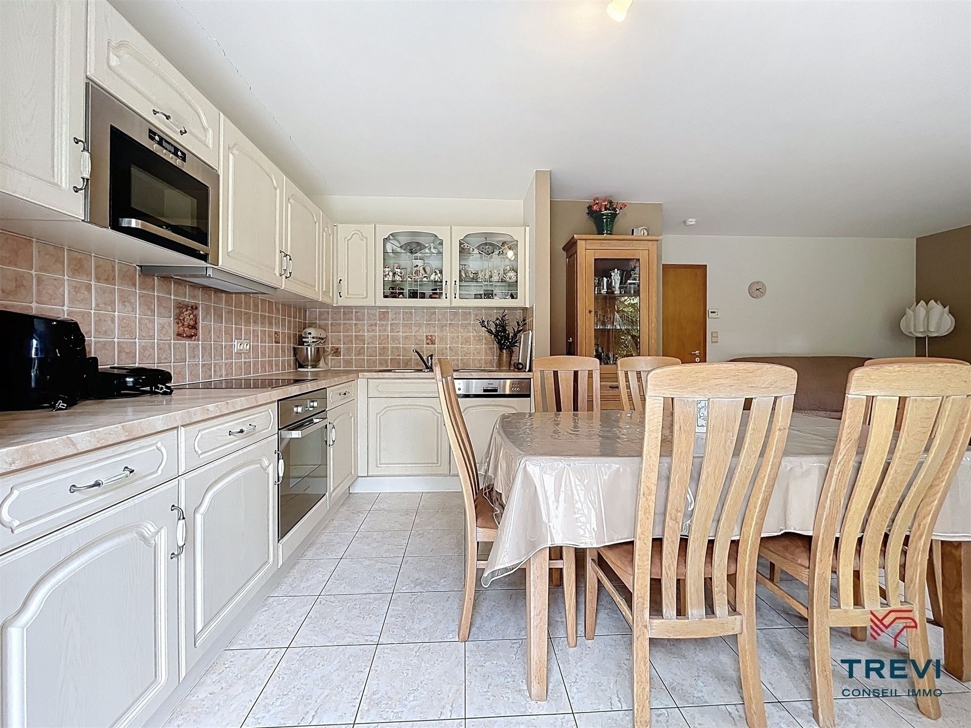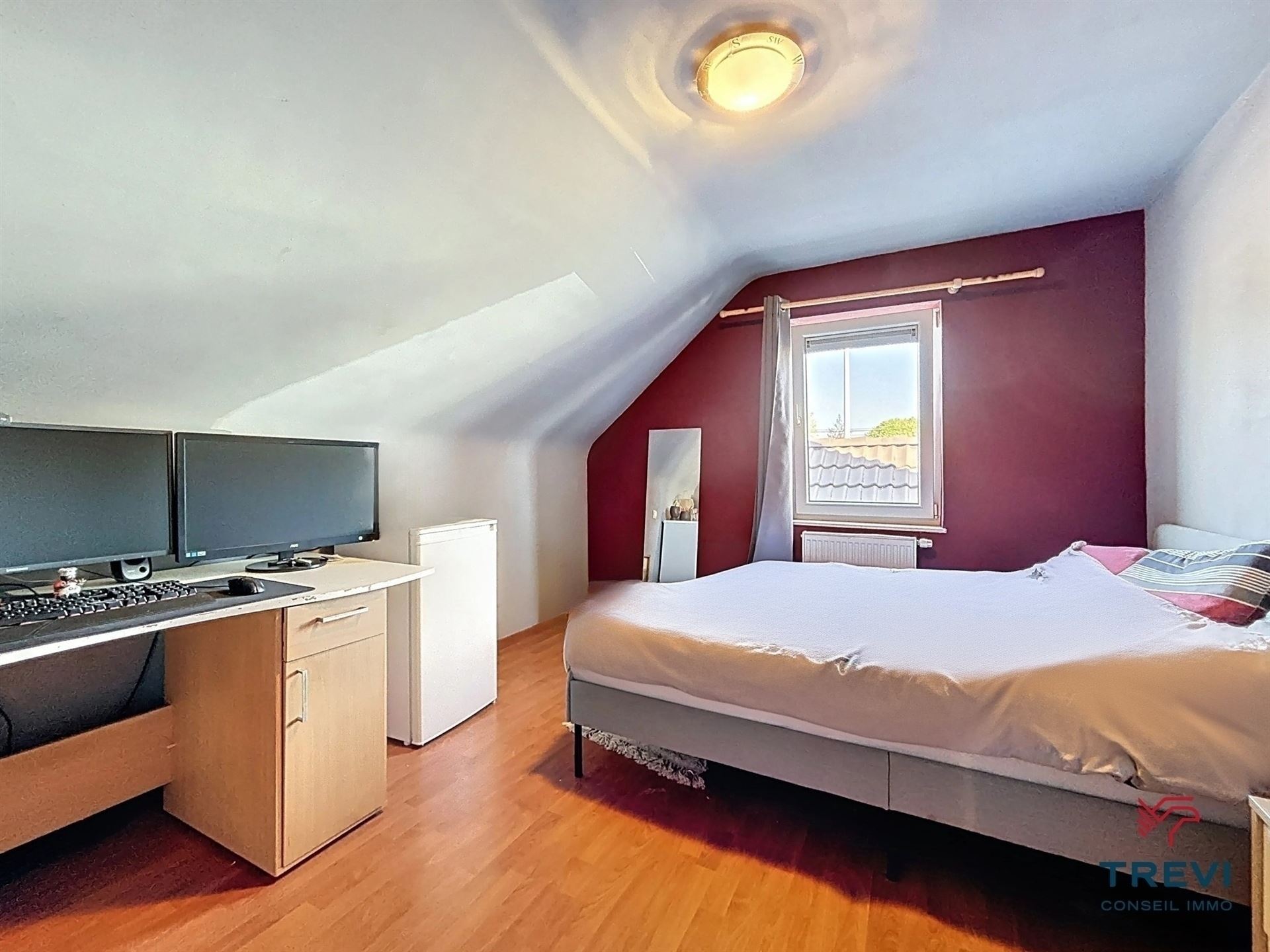 SOUS OPTION Belle villa kangourou uni familiale de construction traditionnelle récente proposant de beaux volumes et un splendide jardin bien orienté. Garage et emplacements de parking privés devant la propriété. Situation idéale proche de la gare, des commerces et écoles (tout accessible à pied). La partie principale de la propriété se compose d'un hall d'entrée avec vestiaire et toilette invités de 7 m² vers le grand séjour carrelé de 35 m² vers le jardin, la belle terrasse et le joli kiosque en fer forgé. Grande cuisine Eggo ouverte vers la véranda rétractable de 15 m². Buanderie carrelée avec chaufferie et rangements. À l'étage, via le hall de nuit de 10 m², 5 belles chambres et salle de bain et salle de douche. Toilette séparée. L'autre partie de la maison, avec son entrée indépendante propose un hall d'entrée carrelé de 7 m² avec vestiaire vers le séjour de 35 m² et sa cuisine ouverte rustique toute équipée. Terrasse et accès au jardin. Belle chambre carrelée de 12 m² et sa salle d'eau composée d'une cabine de douche avec toilette et d'un espace buanderie. Garage et 4 emplacements de parking privatifs pour la maison. Grillage d'accès en fer forgé. Cc gaz (chaudière Buderus de 2021). 30 panneaux photovoltaiques. Système d'alarme. Faire offre à partir de 480 000€. Infos et visites au 02/355.50.55