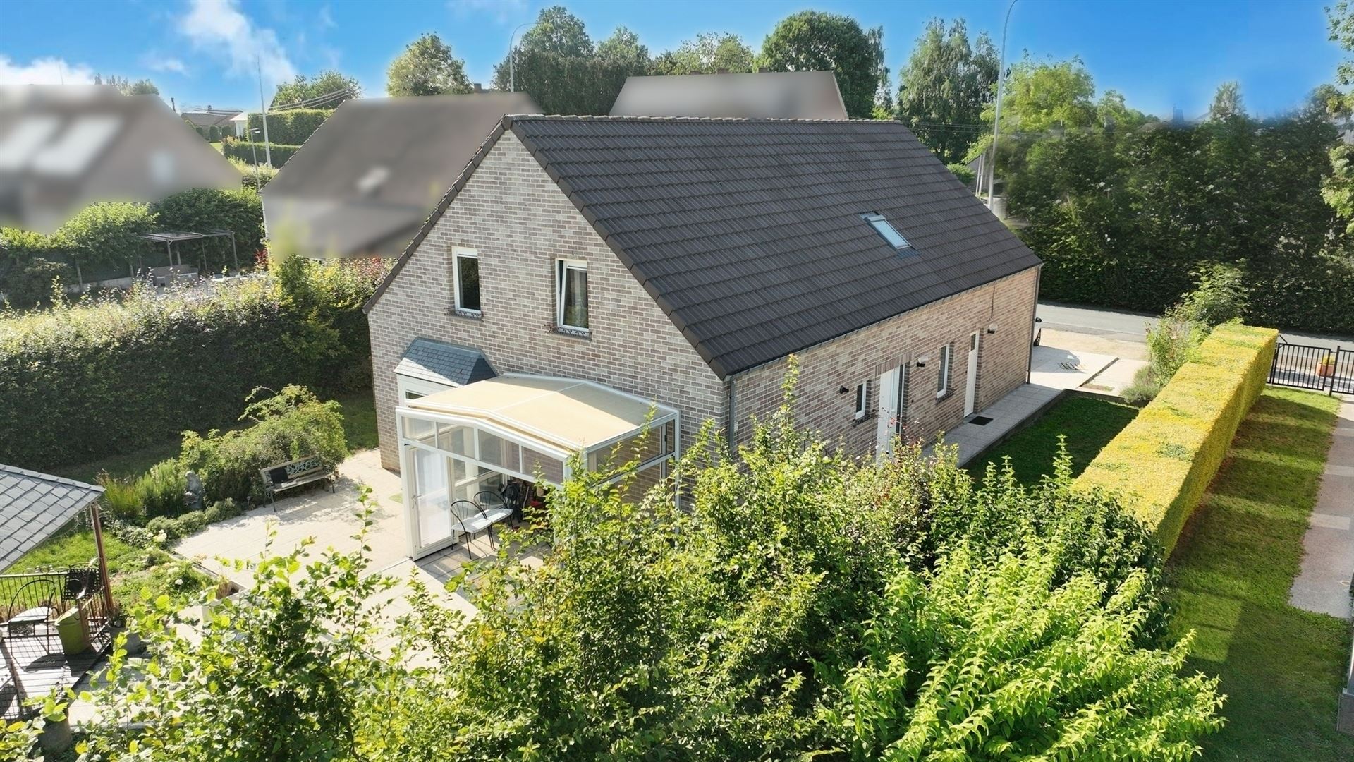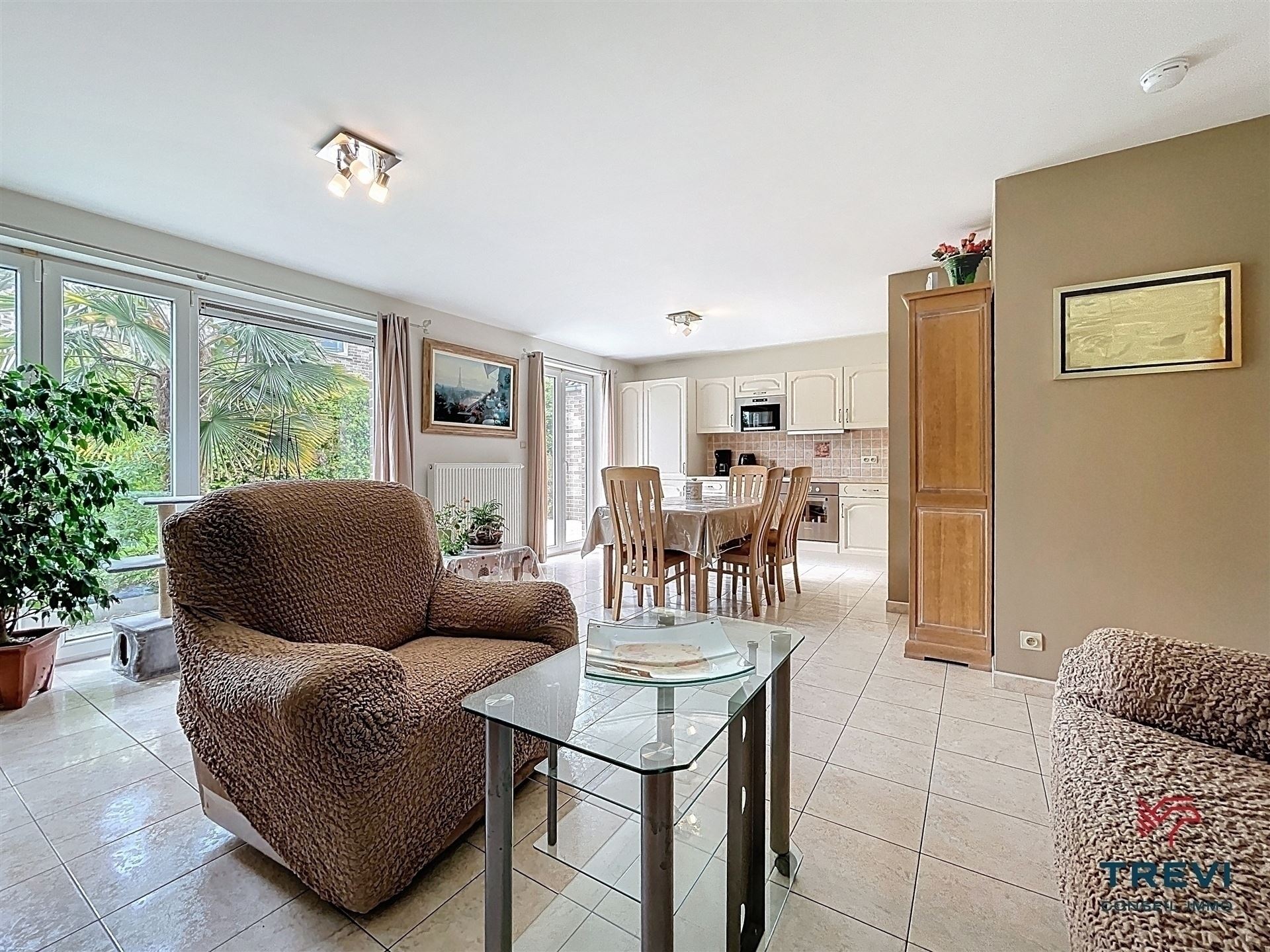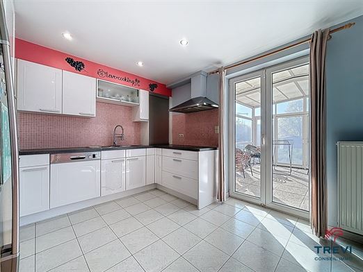 SOUS OPTION Belle villa kangourou uni familiale de construction traditionnelle récente proposant de beaux volumes et un splendide jardin bien orienté. Garage et emplacements de parking privés devant la propriété. Situation idéale proche de la gare, des commerces et écoles (tout accessible à pied). La partie principale de la propriété se compose d'un hall d'entrée avec vestiaire et toilette invités de 7 m² vers le grand séjour carrelé de 35 m² vers le jardin, la belle terrasse et le joli kiosque en fer forgé. Grande cuisine Eggo ouverte vers la véranda rétractable de 15 m². Buanderie carrelée avec chaufferie et rangements. À l'étage, via le hall de nuit de 10 m², 5 belles chambres et salle de bain et salle de douche. Toilette séparée. L'autre partie de la maison, avec son entrée indépendante propose un hall d'entrée carrelé de 7 m² avec vestiaire vers le séjour de 35 m² et sa cuisine ouverte rustique toute équipée. Terrasse et accès au jardin. Belle chambre carrelée de 12 m² et sa salle d'eau composée d'une cabine de douche avec toilette et d'un espace buanderie. Garage et 4 emplacements de parking privatifs pour la maison. Grillage d'accès en fer forgé. Cc gaz (chaudière Buderus de 2021). 30 panneaux photovoltaiques. Système d'alarme. Faire offre à partir de 480 000€. Infos et visites au 02/355.50.55
