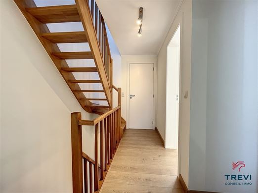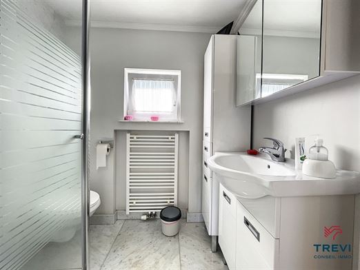 SOUS OPTION Rebecq. Jolie maison 5 chambres avec une magnifique terrasse joliment rénovée dans une petite rue résidentielle sans issue. Elle se compose d'un bel hall d'entrée avec toilette invités et vestiaire vers le beau séjour carrelé (imitation parquet) de 30 m² et son module d'air conditionné. Jolie cuisine toute équipée très fonctionnelle avec plan de travail en pierre naturelle. A l'étage, hall de nuit vers 3 belles chambres de 12, 11 et 8 m² et une salle douche composée d'une cabine de douche, d'un meuble évier et d'un wc. A l'étage supérieur, bel espace de rangement de 7 m², jolie chambre sous vélux de 13 m² et une autre salle de bain. Au sous-sol, petit studio idéal pour un invité, composé d'une chambre de 13 m², d'une grande cuisine vers le jardin et une buanderie avec cabine de douche. Toilette séparée. PEB D avant travaux d'isolation de la façade. Électricité conforme. Cave. CC au gaz (nouvelle chaudière). Panneaux Photovoltaïques (12). Double vitrage pvc et volets. Faire offre à partir de 295.000€. Infos et visites au 02.355.50.55.