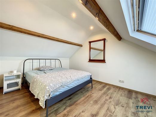 SOUS OPTION Rebecq. Jolie maison 5 chambres avec une magnifique terrasse joliment rénovée dans une petite rue résidentielle sans issue. Elle se compose d'un bel hall d'entrée avec toilette invités et vestiaire vers le beau séjour carrelé (imitation parquet) de 30 m² et son module d'air conditionné. Jolie cuisine toute équipée très fonctionnelle avec plan de travail en pierre naturelle. A l'étage, hall de nuit vers 3 belles chambres de 12, 11 et 8 m² et une salle douche composée d'une cabine de douche, d'un meuble évier et d'un wc. A l'étage supérieur, bel espace de rangement de 7 m², jolie chambre sous vélux de 13m² et une autre salle de bain. Au sous-sol, petit studio idéal pour un invité, composé d'une chambre de 13m², d'une grande cuisine vers le jardin et une buanderie avec cabine de douche, Toilette séparée. PEB D avant travaux d'isolation de la façade. Électricité conforme. Cave. CC au gaz (nouvelle chaudière). Panneaux Photovoltaïques (12). Double vitrage pvc et volets. Faire offre à partir de 295.000€. Infos et visites au 02.355.50.55.