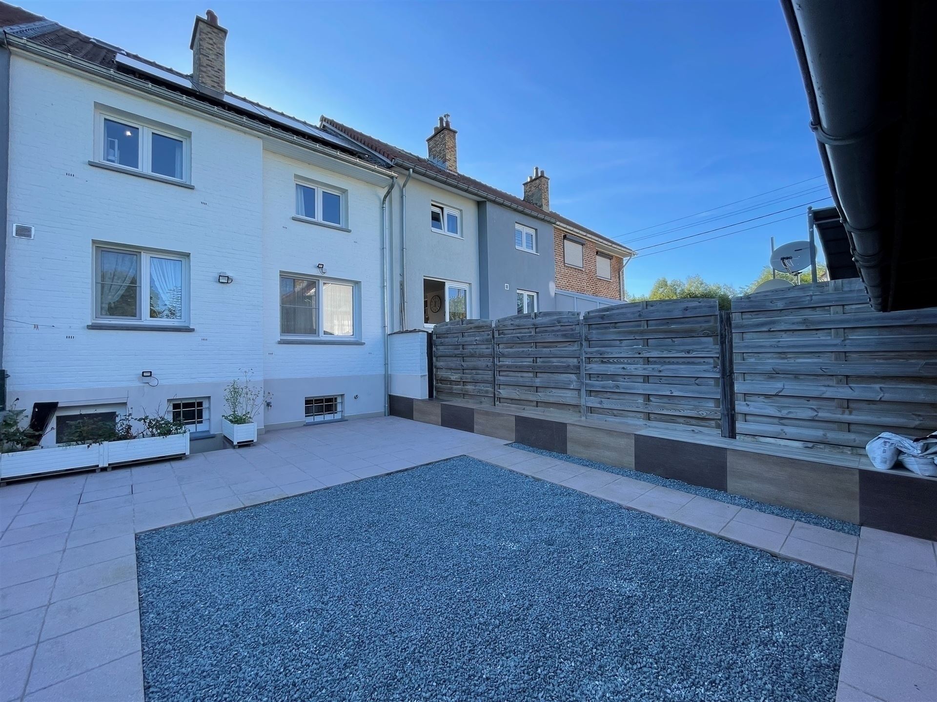 SOUS OPTION Rebecq. Jolie maison 5 chambres avec une magnifique terrasse joliment rénovée dans une petite rue résidentielle sans issue. Elle se compose d'un bel hall d'entrée avec toilette invités et vestiaire vers le beau séjour carrelé (imitation parquet) de 30 m² et son module d'air conditionné. Jolie cuisine toute équipée très fonctionnelle avec plan de travail en pierre naturelle. A l'étage, hall de nuit vers 3 belles chambres de 12, 11 et 8 m² et une salle douche composée d'une cabine de douche, d'un meuble évier et d'un wc. A l'étage supérieur, bel espace de rangement de 7 m², jolie chambre sous vélux de 13 m² et une autre salle de bain. Au sous-sol, petit studio idéal pour un invité, composé d'une chambre de 13 m², d'une grande cuisine vers le jardin et une buanderie avec cabine de douche. Toilette séparée. PEB D avant travaux d'isolation de la façade. Électricité conforme. Cave. CC au gaz (nouvelle chaudière). Panneaux Photovoltaïques (12). Double vitrage pvc et volets. Faire offre à partir de 295.000€. Infos et visites au 02.355.50.55.