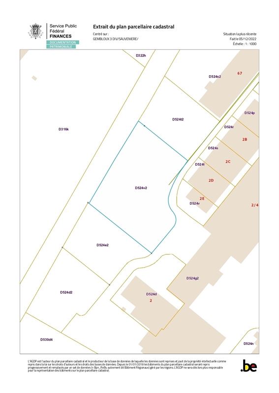 Numéros cadastraux : Section D numéro 524B2 à Sauvenière