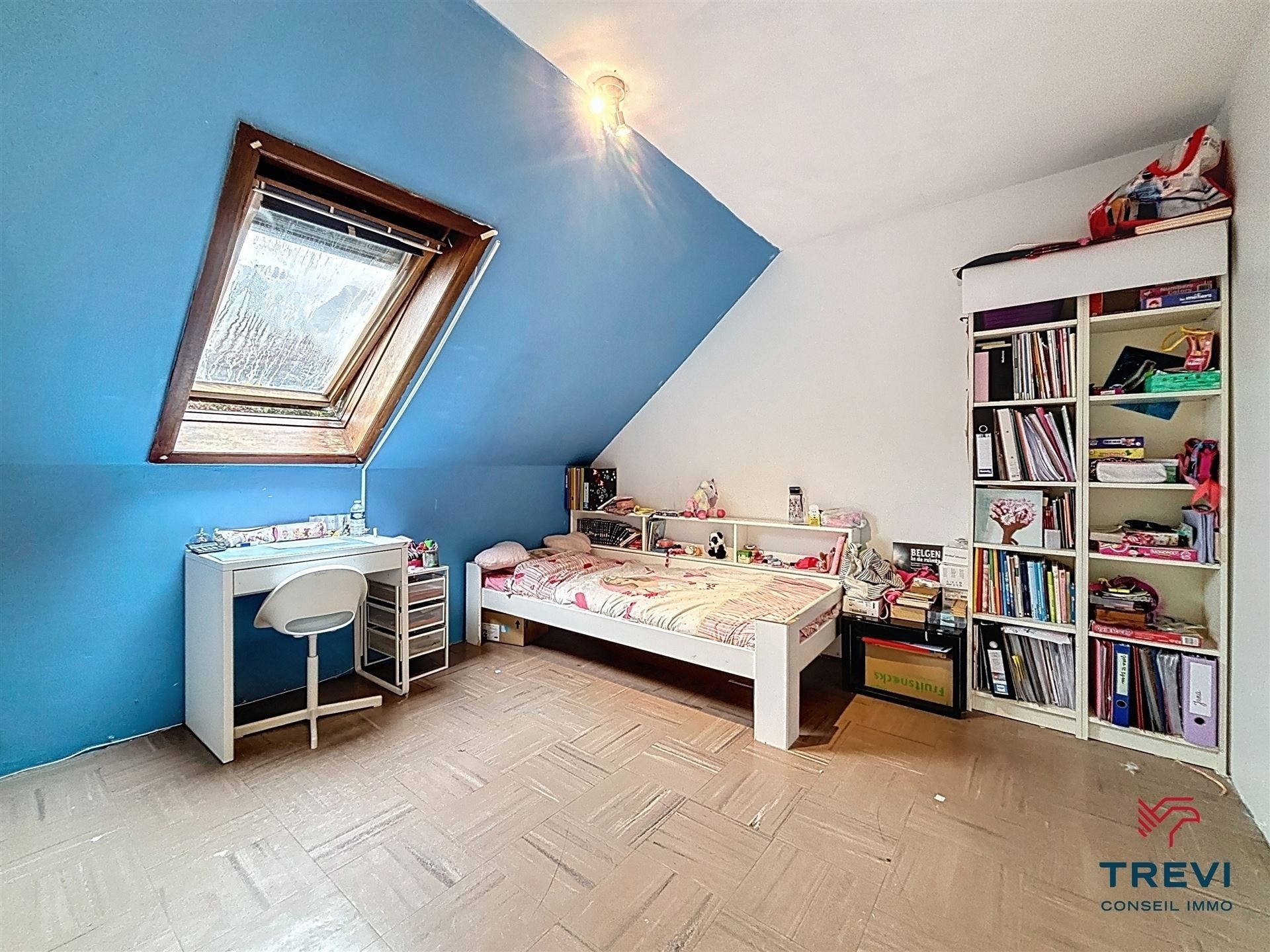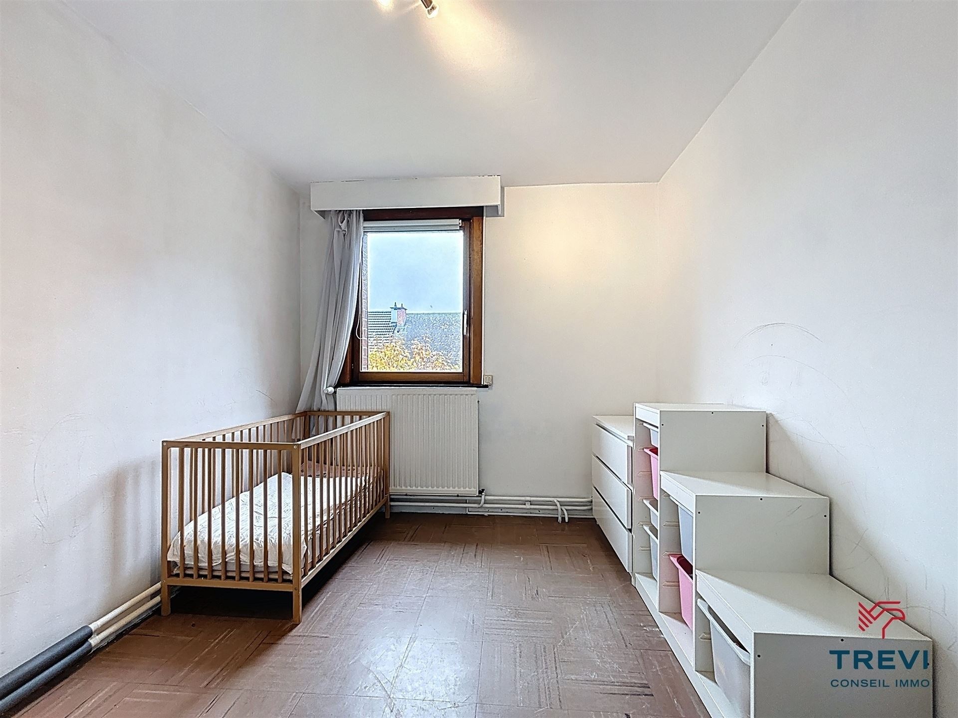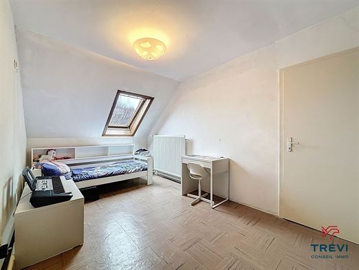 SOUS OPTION Très proche des écoles, des commerces et du centre d'Enghien, une jolie maison 3 façades située dans un clos résidentiel calme de Marcq et très prisé, toute en demi-niveaux originaux offrant 5 chambres et un beau jardin. Le rez-de-chaussée se compose d'un grand garage et via le hall, un séjour lumineux de 22 m² en demi-niveau donnant accès à la terrasse et au grand jardin; en descendant quelques marches, une cuisine entièrement équipée et un Wc séparé. A l'étage, via le hall de nuit, 3 belles chambres de 15 m² ,14 m² et un plus petite de 12 m². Une salle de douche avec meuble évier et un wc. Placards encastrés. A l'étage supérieur, encore deux grandes chambres d'enfants de 13 et 12 m². Espace grenier de rangement. CC au gaz. Toute nouvelle chaudière Vaillant EcoTEC pro. Adoucisseur d'eau. Double vitrage bois. Électricité conforme. Volets électriques. PEB C. Faire offre à partir de 285.000€. Infos et visites au 02/355.50.55.