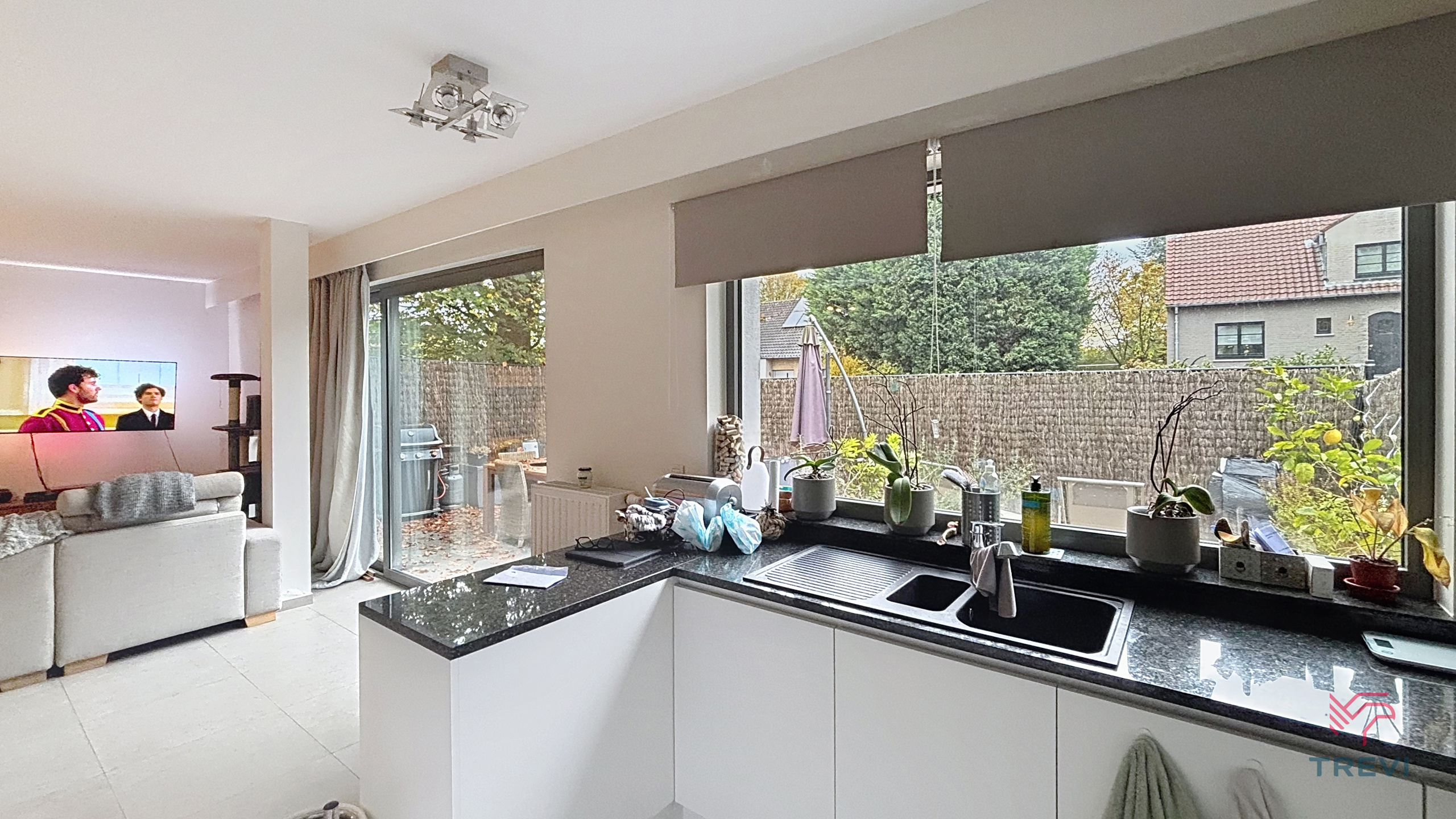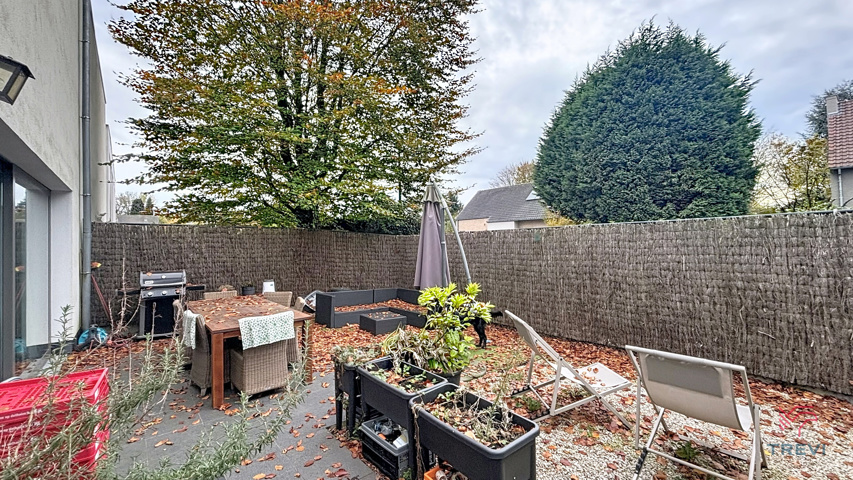 - Séjour de ±30m² (6,5m x 4,7m) qui donne sur un jardin avec une partie terrasse orienté Est