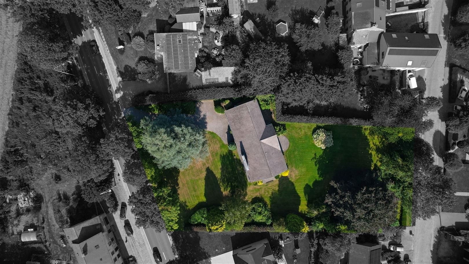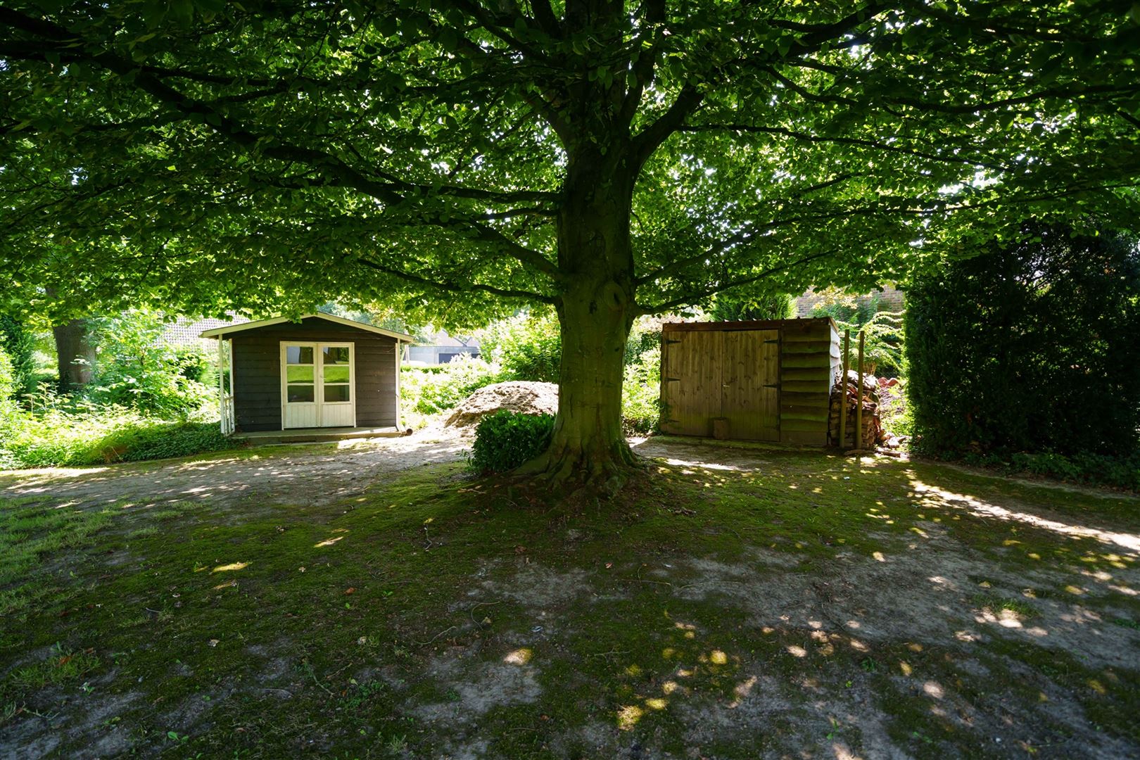 Grand jardin arboré avec deux abris de jardin, terrasses et 4 places de parking dans l'allée, possibilité division pour terrain à bâtir